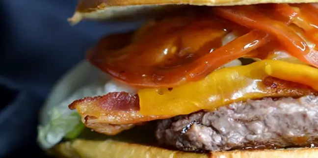 Chipotle dressing, bacon, and grilled onions. Top quality, never frozen. Burgers served with lettuce, tomato, pickles, onions, and house sauce.
